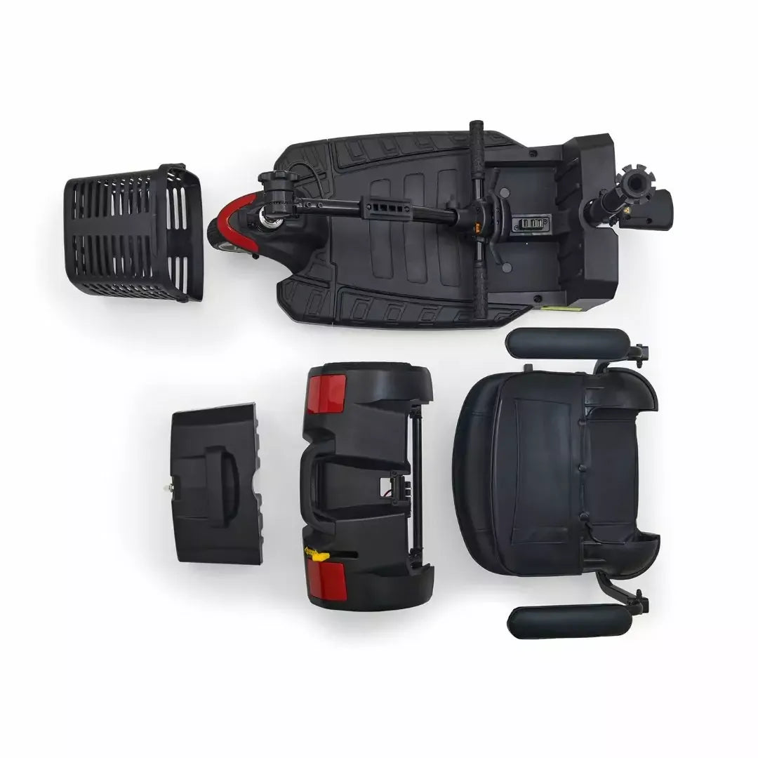 This sporty design features a lightweight, stadium style seat, a weight capacity of 300 lbs., and increased foot room. The new Buzz LT also has a charger port in the tiller, a new hard plastic rugged basket, and color through shrouds. Enjoy its tight indoor maneuverability and smooth outdoor ride with 2.5″ of ground clearance!